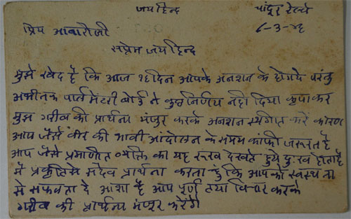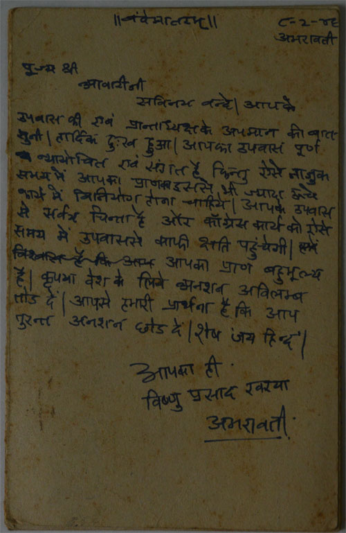 Next day he was given Khadi clothes and transferred to Raipur jail. There he demanded that